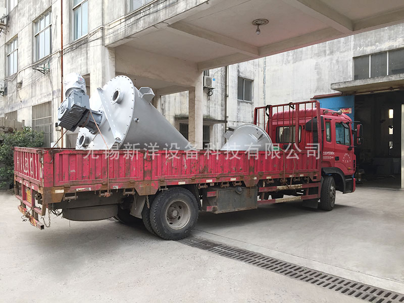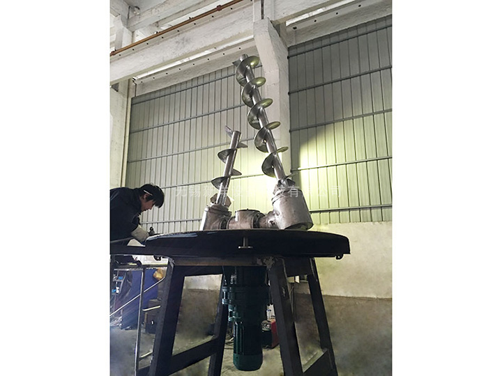 3、螺旋部分:筒體內(nèi)兩只非對(duì)稱(chēng)排列的螺旋作自、公轉(zhuǎn)行星運(yùn)動(dòng)時(shí),在較大范圍翻動(dòng)物料,使物料快速達(dá)到均勻混合。