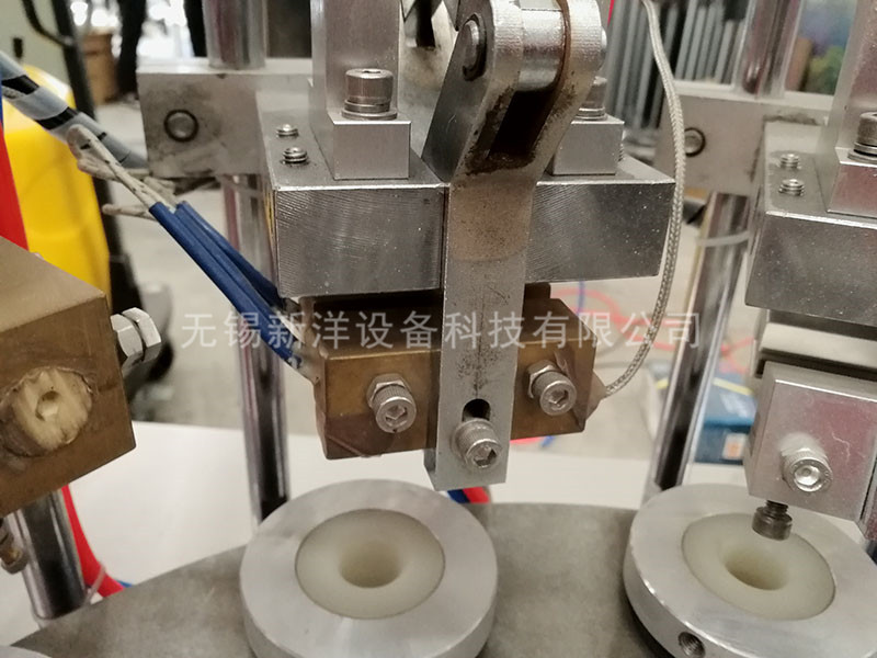 2、軟管試封,因軟管規(guī)格不同,使用不同模具加以配套,安裝完整模具座后,要調(diào)整高度,使管口達(dá)到封尾高度。開(kāi)啟加熱開(kāi)關(guān),設(shè)定內(nèi)加熱和外加熱兩溫度,通電以后電流表有指示,溫度應(yīng)逐步迭加,達(dá)到理想的封口溫度。(通常情況內(nèi)加熱設(shè)定250度,外加熱設(shè)定210度),等待溫度上升到設(shè)定值后即可灌裝。